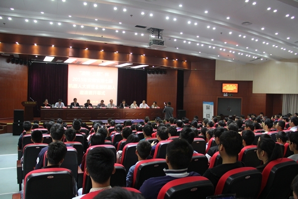 10月24日上午,“凌翔•三联”杯2015年安徽省第七届机器人大赛暨全国机器人邀请赛开幕式在我校图书馆学术报告厅隆重举行。来自安徽大学、合肥工业大学、安徽理工大学等46所高校和中小学的200余支队伍共同掀起一场科技盛宴。此次大赛由安徽省教育厅主办,安徽省高等学校计算机教育研究会、安徽三联学院、合肥工业大学计算机与信息学院和安徽省人工智能学会承办,合肥凌翔信息科技有限公司协办。省教育厅高教处副处长梁祥君,安徽省高等学校计算机教育研究会理事长胡学钢、秘书长孙中胜、常务理事张润梅、理事方宝富及合肥凌翔信息科技有限公司总经理李翔等领导应邀出席开幕式,我校领导李明阳、鲁先长、姜发根参加开幕式。开幕式由安徽省高校计算机研究会常务理事、副秘书长、安徽建筑大学张润梅教授主持。