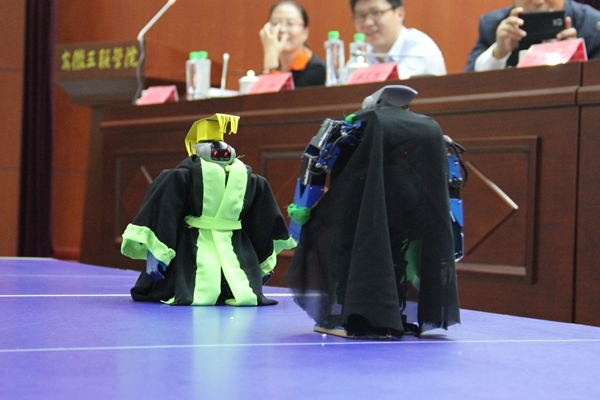 在一段精彩的机器人表演《荆轲刺秦王》和《小苹果机器人舞蹈》后,省教育督导专员、校党委书记李明阳宣布本次机器人大赛正式开幕。
