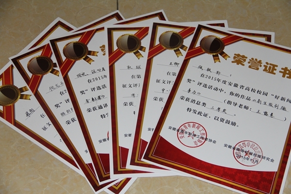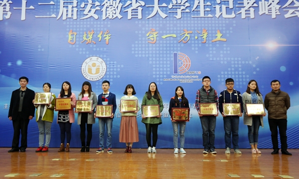 在本届峰会开展的十佳记者站、好新闻及主题征文的评定中,我校喜获多项殊荣:在“双十佳”评选中,我校大学生记者团与安徽大学、合肥学院等10所高校荣获“《安徽青年报》十佳记者站”称号,这是我校首次获得该项荣誉,也是对我校大学生记者团所有学生记者辛勤工作的肯定和鼓励;在“好新闻奖”评选中,何欢、汪心月《“席卡”摆上桌,“领导”来上课》荣获“通讯类”二等奖,倪龙天《老师,请让我用最酷的阵型向您致敬》荣获“图片类”二等奖,张轶轩《新生报到趣事多》荣获“消息类”三等奖;在主题征文评选中,我校2015级新生记者崭露头角,耿越《心守净土,芳扫尘俗》、程雨《自媒体时代,清者的净土》、王柳《掬一杯明月,守一方净土》荣获三等奖。