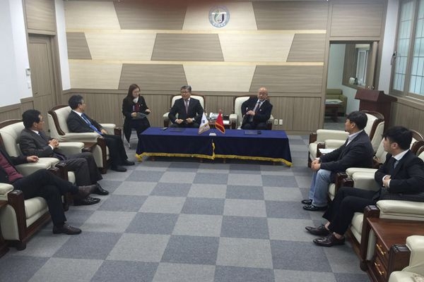 访问期间,金会庆校长先后受到了韩国国会议员田炳宪和济州岛国会议长具成知以及当地企业界代表人士的热烈欢迎和盛情款待。双方在友好的氛围中,一同就两国间的文化交流、校际合作、校企合作等系列问题展开了友好而坦诚的对话与交流。金会庆校长认为,双方应当以“面向未来”为导向,以“立足当前”为起点,充分发掘民办高校在科技创新中的排头兵地位,突出民办教育在促进创业就业中的引导性作用,不断改进民办高校科研创新和人才培养模式转变。韩国国会议员田炳宪和济州岛国会议长具成知以及当地企业界代表人士对金会庆校长的见解和倡议表示十分赞同和支持,同时也表示将促进更多的韩国企业和各界人士与我校一起,在促进民办高校教育高水平化,校企合作国际化等领域不断加强联系。