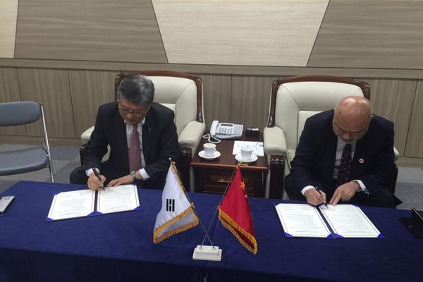 在访问国立韩国交通大学、国立济州大学、民办韩国拿撒勒大学和启明大学期间,金会庆校长一行在各高校领导及相关负责人的引导下,先后走进大学校园内,深入各教学点和科研机构,同广大师生进行交流与互动。同时,作为安徽竹稞学宫文化研究中心主任,金会庆校长围绕“道家经济思想”的现代启示发表了专题演讲。幽默诙谐的语言,深入浅出的讲解,赢得在场师生阵阵掌声和一致好评,为广大师生了解中国拓展了新思路、提供了新方法。参观考察结束后,金会庆代表安徽三联学院分别同国立韩国交通大学和济州大学签订了一系列校级合作协议并互赠礼品。