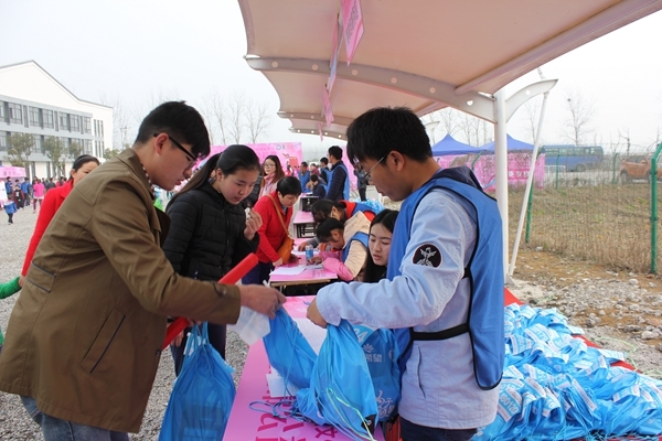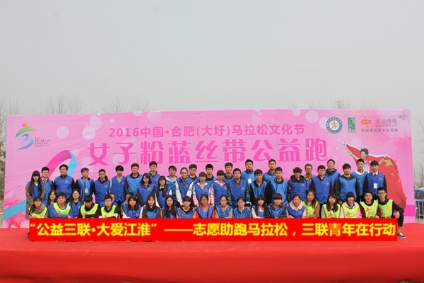 3月6日,“2016合肥女子粉蓝丝带公益跑”在合肥市包河区大圩镇大圩游客接待中心举行,我校百余名志愿者为活动热情助力。活动开始前,我校学子早早来到现场,他们有序地分布于赛场的各个角落,不畏苦不怕累的坚守在自己的岗位上,时刻准备着为每一名参赛选手服务。从指路解疑到维持秩序,从布置赛场到清理赛道,从发放补给到测评成绩,举手投足间都展现出“公益三联,大爱江淮”的志愿服务精神。
