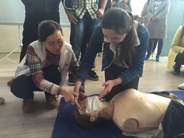 医学教授向志愿者介绍心肺复苏及人工呼吸
