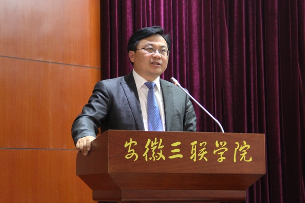 随后,姜发根副校长代表筹备领导小组向大会介绍了安徽三联学院机器人工程学院筹建基本情况及发展规划情况。王瑞友副校长宣读了“关于成立安徽三联学院机器人工程学院”的文件。