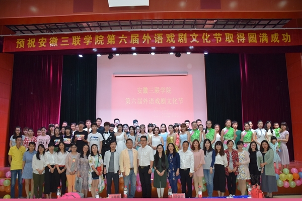 为彰显外语语言魅力,丰富学生课余生活,由外语学院主办的安徽三联学院第六届外语戏剧文化节英语专场及日语专场分别于5月12日、13日晚在图书馆多功能报告厅举行。校领导鲁先长、金哲,校团委书记李燕,校企合作单位合肥轩昂教育咨询有限公司、日企卡西欧安徽公司相关负责人,外语学院领导、教师代表及600余名学生参加此次活动。