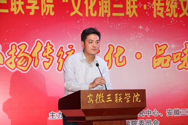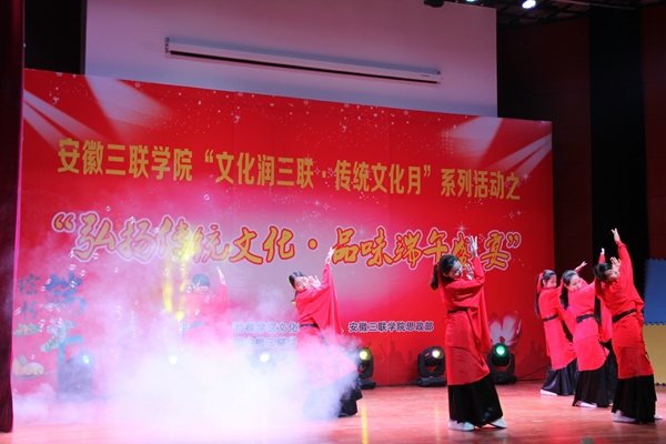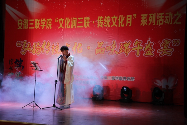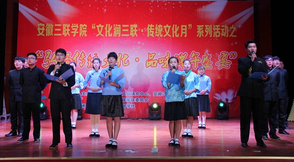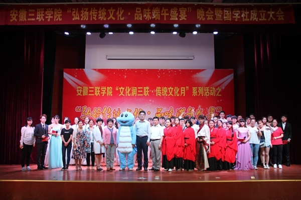 6月6日,由安徽竹稞学宫文化研究中心、共青团安徽三联学院委员会等主办,国学社承办的“弘扬传统文化·品味端午盛宴”晚会暨国学社成立大会在我校图书馆多功能报告厅隆重举行。副校长姜发根及学生处、团委、部分二级学院领导、师生参加了此次晚会。
