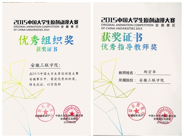 6月10日, 2015中国大学生原创动漫大赛安徽省级赛组委会公布了获奖结果。本赛事是由教育部、文化部共同主办,省级赛由省教育厅主办,安徽工程大学承办。