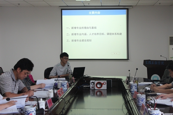 会上,教务处蔡文芬处长解读了国家教育部及省教育厅有关新设专业文件精神,汇报了我校新专业申报基本情况。各拟新增专业负责人分别就人才需求状况、现有建设基础、人才培养设计、专业建设规划进行了详细汇报。