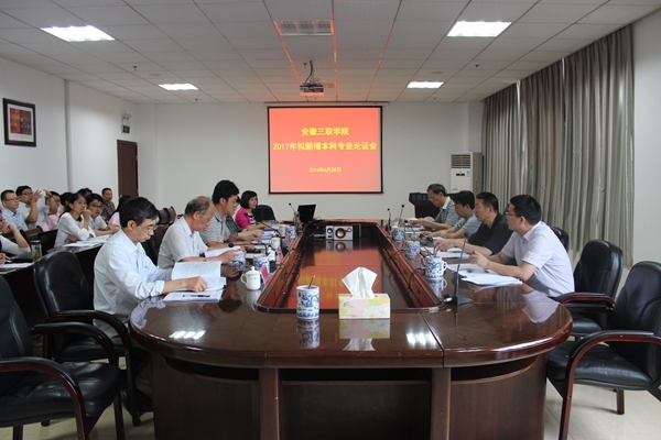 6月28日下午,学校召开了2017年拟新增专业论证会。会议邀请合肥工业大学王浩教授、郑利平教授,合肥师范学院陈明生教授、安徽大学郑常宝教授及三位校内专家对土木工程、轨道交通信号与控制、机器人工程、智能科学与技术、软件工程、妇幼保健医学、药学等拟新增专业进行了评审。会议由副校长姜发根主持。