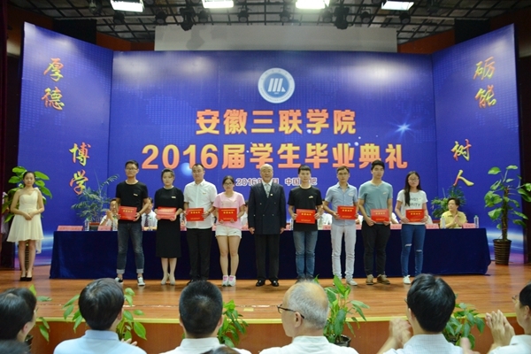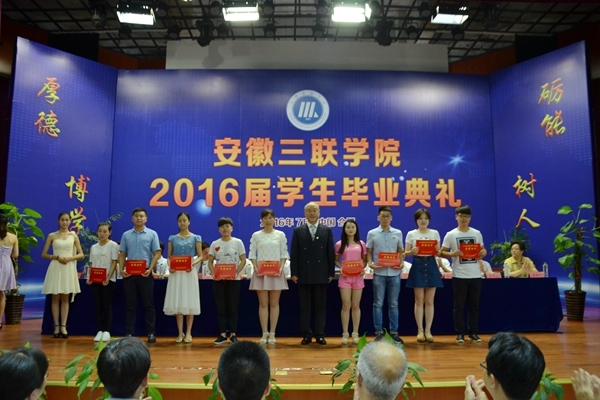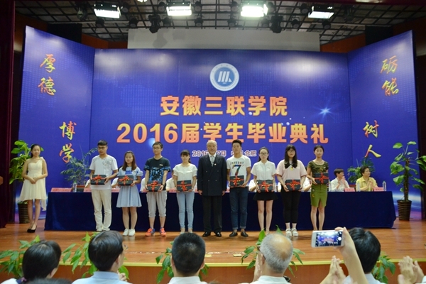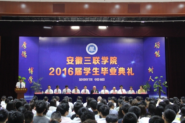 春华秋实,寒暑三载,又到一年毕业季,又是一年收获时。7月11日,安徽三联学院2016届专科生毕业典礼在图书馆多功能厅隆重举行。校长金会庆教授出席毕业典礼为同学们颁发毕业证书并致辞,三联集团及学校领导张方振、余皖生、朱熔、李明阳、鲁先长、姜发根、金美莲、秦永元、曹艳平、金哲出席典礼并在主席台就坐,典礼由副校长王瑞友主持。2016届的一千二百余名专科毕业生,将从这里扬帆起航,开启未来人生之旅的新起点。