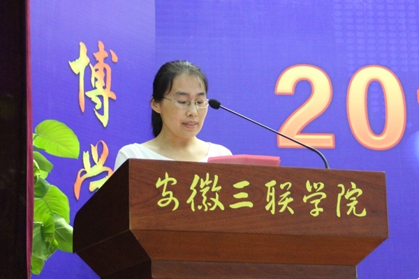 教师代表财会学院副院长范莹莹老师向即将踏上人生新征程的毕业生们送上殷切的期望和祝福,希望同学们踏踏实实,一步一个脚印,走好今后人生的每一步,做一个勇敢、坚强、热爱生活、不忘良知的有为青年,为自己曾经的梦想继续奋斗。