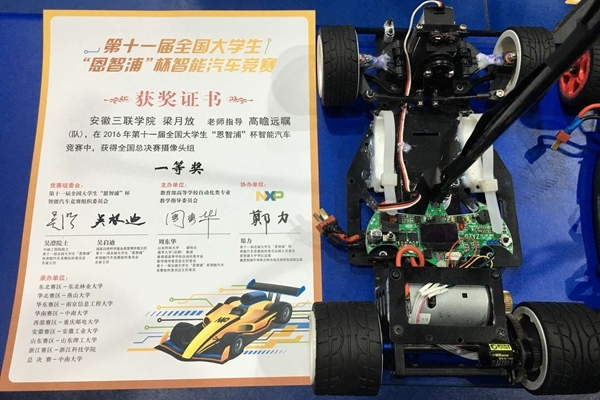 8月17-20日,第十一届全国大学生“恩智浦”杯智能汽车竞赛全国总决赛在中南大学举行,来自全国100多所高校的近300支队伍参加了本次竞赛。经过三天的激烈角逐,我校计算机工程学院组建的“高瞻远瞩”和“先驱音速”两支队伍在总决赛中分别荣获全国一等奖和二等奖,其中“高瞻远瞩”队是安徽赛区四支晋级国赛摄像头组队伍中唯一获此殊荣的队伍。