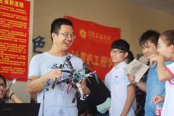 我校机器人工程学院今年首次招生,该院接待点有两个机器人在欢迎新同学,为新生及家长表演各种舞蹈动作;计算机工程学院则用电子遥控车及遥控飞机欢迎着新同学,充分体现了我校学生学术科技的丰硕成果。