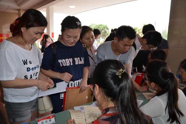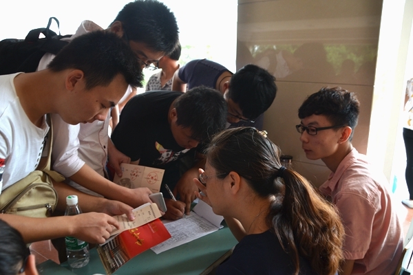 各学院接待点以及大学生事务发展中心的工作人员,耐心地为新生办理手续并解答新生及家长的问题。
