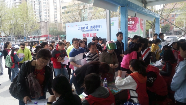 4月2日-3日,为期两天的2017环巢湖毅行大会物资发放工作已圆满结束。我校120名青年志愿者利用假期时间,在校团委老师的带领下,分别于合肥市银泰中心和宝能城,为2万名毅行者发放物资。