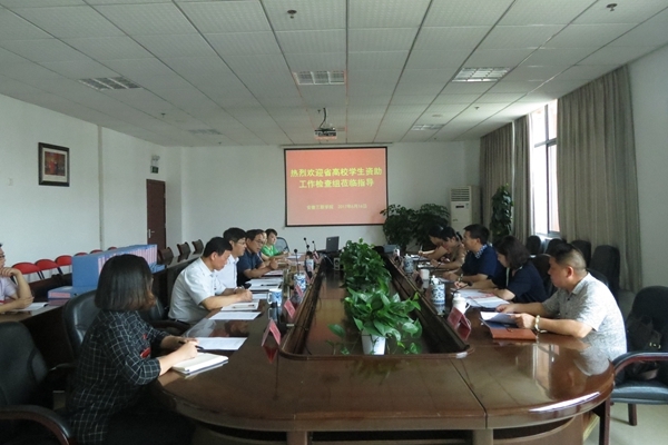 6月16日下午,安徽省高校学生资助检查组组长、安庆师范大学副校长汪时珍等一行5人莅临我校检查指导学生资助工作。汇报会在图书馆T518会议室召开,校党委副书记鲁先长、校长助理方劲松,校综合办、财务处、学生处等部门负责人及学生资助管理中心工作人员参加会议。汇报会由副校长王瑞友主持。