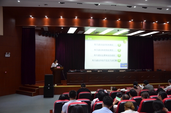 为加强学校教风学风建设,进一步优化教育环境,不断提高教学质量,6月28日,安徽三联学院第二届“说教风”活动在图书馆学术报告厅拉开帷幕。校领导金美莲、操晓峰及各教学单位负责人、教学副院长及全体教师参加了此次活动。党办、质量管理与评估办公室、教务处、人事处、科研处等部门的负责人担任评委。