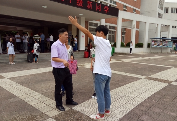 据悉,此次志愿者不仅有各校院级组织干事,还有许多热心的学长学姐。他们来回穿梭在校园的角角落落,为新生报到提供方便。每当新生迷茫无措走进校园的时候,志愿者们总是会及时地出现,并以最饱满的热情为他们服务。经过层层选拔培训的志愿者们,面对新生最先脱口而出的便是询问新生的学院专业,然后将他们带向报到的地点,并在工作人员的帮助下办好入学手续。从教学区到生活区虽然只有一桥相隔,但上下天桥的时候,贴心的学长学姐都会主动帮新生提行李,一句句掷地有声的谢谢如一阵阵清爽的风,吹过学姐学长们脸颊上滑落的汗珠,留下丝丝清凉。而这一路上,面对新生和家长们的疑惑,他们总是会耐心的一一解答。纵使走过天桥,志愿者们依旧没有停下前行的脚步。他们还主动送新生到达指定的宿舍,并带着新生办理校园一卡通,贴心的告知着一切注意事项,随后才缓缓离开,准备迎接下一个三联新生。