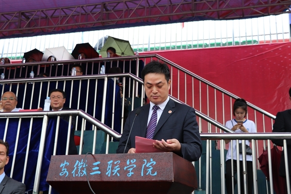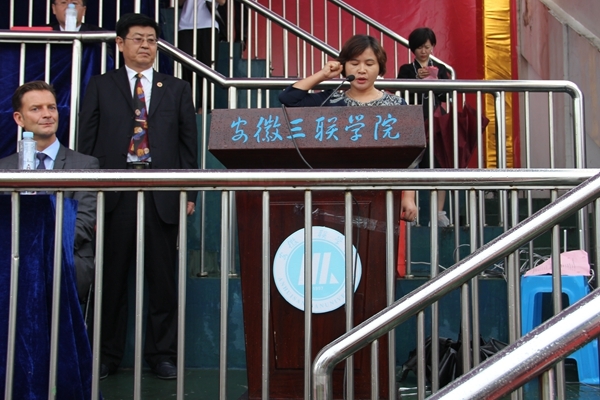 安徽三联学院教务处处长蔡文芬同志代表全体教师宣誓
