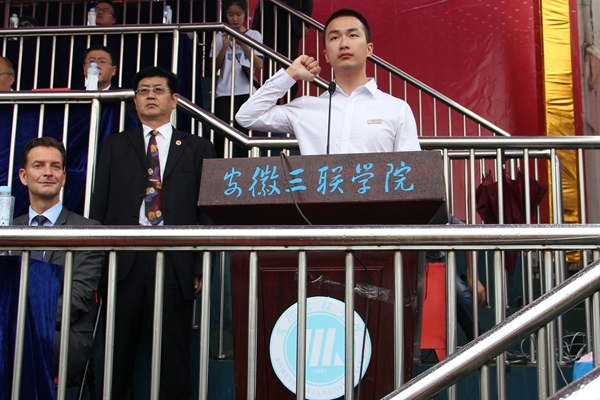 安徽三联学院学生会副主席洪博同学带领2017级新生庄重宣誓