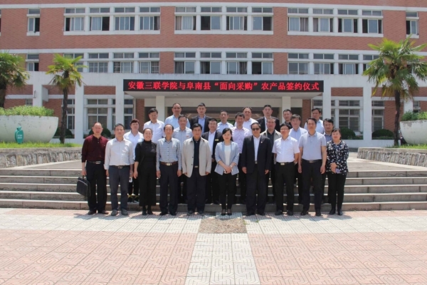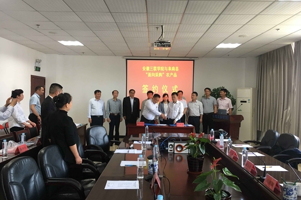 4月28日,安徽三联学院与阜南县“面向采购”签约仪式在图书馆518会议室举行。副校长秦永元、王瑞友,总务处、采购中心及食堂负责人,阜南县副县长刘丽丽,县政府法制办、县教育局、县教育局扶贫办领导和阜南县供货商等负责人出席仪式。