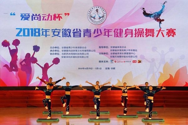由安徽省青少年体育联合会主办的“爱尚动杯”2018安徽省青少年健身操舞大赛于6月29日在陆军军官学院文体中心拉开序幕。来自全省的52支代表队,千余名运动员参加比赛。