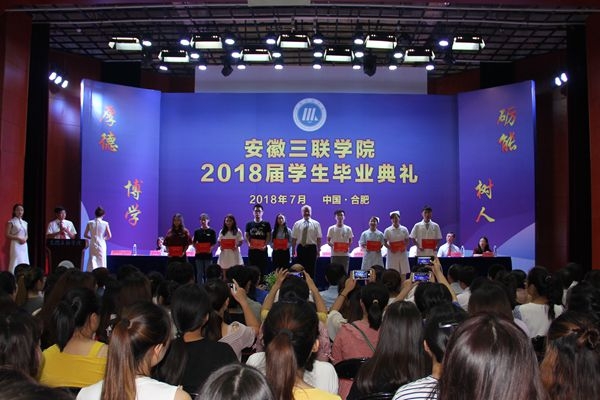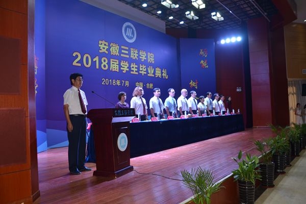 7月13日上午,安徽三联学院2018届专科生毕业典礼在图书馆多功能厅隆重举行。校长金会庆教授,校董事会及校党政领导余皖生、张世伟、金美莲、秦永元、王瑞友、金哲、操晓峰、蔡文芬、方劲松、范兆红,各部门、二级学院负责人,教师代表及890名专科毕业生参加典礼,典礼由校党委副书记鲁先长主持。