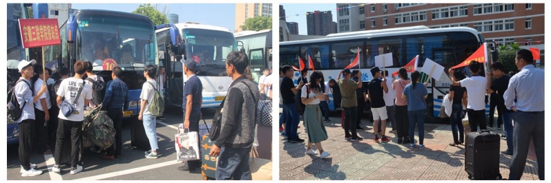 学校组织大巴车十余辆及接站师生志愿者百余人,在合肥市火车站、汽车站、高铁南站等地迎接新生及家长;校园内,各二级单位积极行动,精心安排,设立迎新接待点为新生及其家长提供服务,各项迎新工作井然有序、细致周到,做到让学生满意,让家长放心。