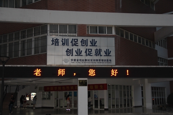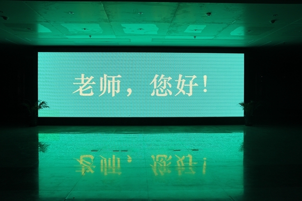 学校图书馆大楼、财会学院、计算机工程学院、外语学院等二级学院教学楼的LED屏、电子显示屏不约而同地亮起了“老师,您好!”的问候语,醒目的绿底黄字表达着对老师的崇高敬意,学校里处处涌动着节日的氛围,时刻向教师们送出声声祝福:“老师,您好!”