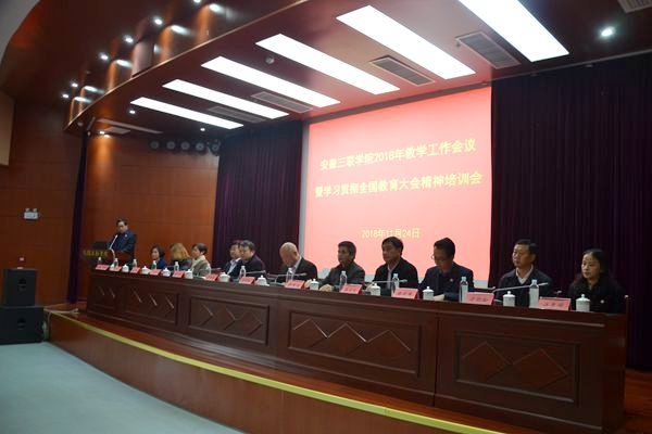 为深入贯彻落实全国教育大会精神,加快振兴本科教育,构建高水平人才培养体系,全面提高学校人才培养能力,学校于11月24日在图书馆学术报告厅隆重召开2018年教学工作会议暨学习贯彻全国教育大会精神培训会。省教育厅高教处副处长粱祥君博士,教育部评估专家合肥学院教学质量监控与评估处处长余国江教授应邀莅临会议指导。在肥的校党政领导,全校副科级及以上干部,专业带头人及培养对象、教研室主任、实验室主任、教学秘书、副高级及以上职称教师,教师、辅导员代表,校院二级教学督导、质量管理与评估办公室、教务处全体人员、提交会议论文作者等300余人参加了会议。