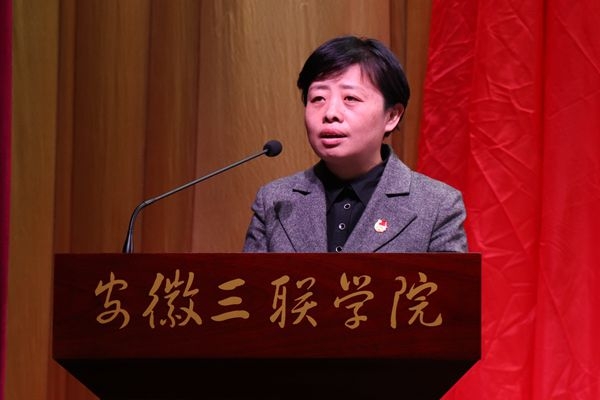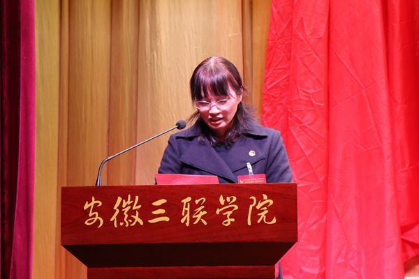 团省委副书记张敏发表重要讲话,她代表共青团安徽省委、安徽省学联对我校第一次团学代会的召开表示热烈的祝贺,并充分肯定了我校各级团学组织取得的成绩,并对广大团员青年、各级团学组织提出三点希望一是坚持以习近平新时代中国特色社会主义思想为指导,引领青年学生坚定理想信念。学校各级团学组织要做好引领凝聚青年的工作,帮助广大青年学生确立正确的理想、坚定的信念。要广泛开展“青年大学习”,以青年喜闻乐见的方式开发学习产品,把新时代党的理论主张转化为青年的行动自觉,把青年最广泛最紧密地团结在党的周围。要继续深入实施“青年马克思主义者培养工程”,培养坚定的青年马克思主义者,使之成长为能在关键时刻为党冲锋陷阵的青年政治骨干。二是坚持以改革为主线,不断提高团学组织履职能力。要持政治建团、思想立团、固本兴团、改革强团、从严治团,把改革任务层层落实、稳步推进。要紧抓重点项目,实施基层团支部“活力提升”工程,推行“班团一体化”运行机制,落实“第二课堂成绩单”制度。要加强学生组织自身建设,探索行之有效的做法和经验,推进全面从严治团。三要以服务青年学生成长成才为目标,引导青年学生积极建功新时代。学校各级团学组织要主动适应青年学生群体的新变化,真心帮助学生缓解学习生活中遇到的实际困难和问题,不断完善学生需求服务、权益维护的渠道和机制。广大团学干部要坚持言传和身教相统一,始终保持与广大青年学生的密切联系,千方百计地为他们排忧解难,努力成为广大青年学生想得起、信得过、靠得住的贴心人,更好担起学生健康成长指导者和引路人的责任。要以习近平新时代中国特色社会主义思想为行动指南,在改革开放40周年之际,不忘初心、勇担使命,在实现中国梦的生动实践中放飞青春梦想,在为党和人民事业的不懈奋斗中书写人生华章。