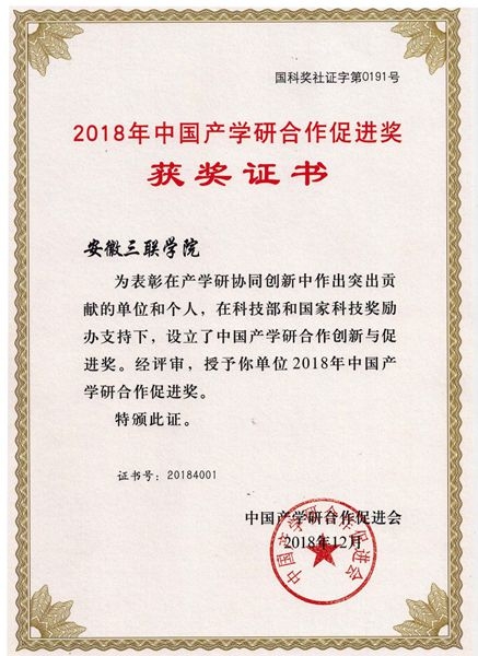 2019年1月6日,以“加强产学研用深度融合 促进民营经济创新发展”为主题的第十二届中国产学研合作创新大会在北京举行。会议表彰了2018年在产学研合作、成果转化、军民融合、弘扬和践行“工匠精神”等方面作出贡献的先进单位和个人。我校荣获“2018年中国产学研合作促进奖”,副校长张世伟参会,并代表学校领取了证书和奖牌。