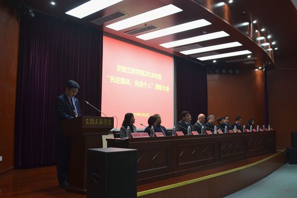 新春伊始,万象更新。3月4日,安徽三联学院2018年度“先进集体、先进个人”表彰大会在图书馆学术报告厅举行。校长金会庆教授,省教育督导专员、校党委书记李明阳及其他校党政领导,各单位副科级及以上管理人员,各二级学院教师、辅导员代表以及全体受表彰人员参加大会,会议由校党委副书记鲁先长主持。