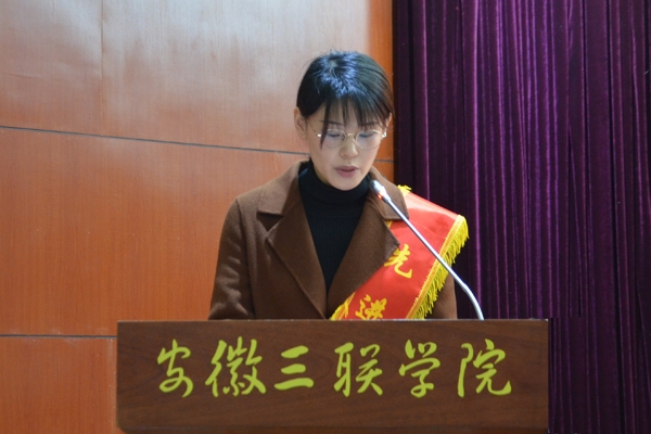 外语学院教师王小曼、校团委书记李燕分别作为先进个人、先进集体代表发言。