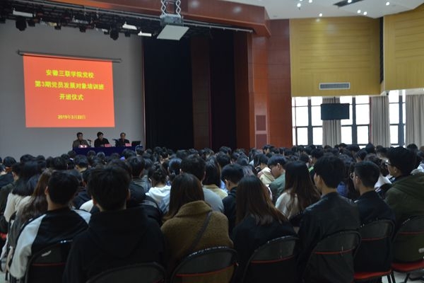 3月22日中午,学校党校在图书馆多功能厅举办第3期党员发展对象培训班开班仪式。校党委副书记、党校校长鲁先长,校党委委员、副校长王瑞友,各基层党委、党总支、直属党支部书记和245名发展对象参加仪式。仪式由校党委委员、党委办公室主任李斌主持。