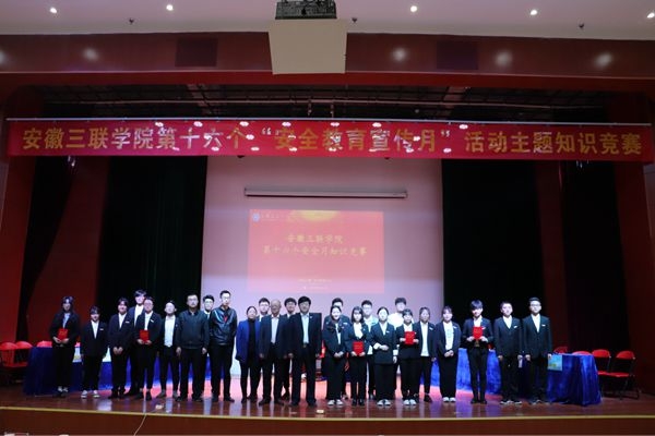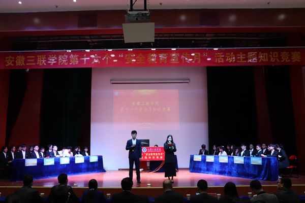 为全面普及校园安全知识,强化校园安全教育,积极营造校园安全文化氛围,3月28日,由共青团安徽三联学院委员会主办、安徽三联学院学生会承办的第十六个“安全教育宣传月”活动主题知识竞赛总决赛在我校图书馆报告厅拉开帷幕。校党委副书记鲁先长,党办、工会、学生处、保卫处、团委负责人和各学院党委(总支)、团总支书记,与在场300余名学生共同观看比赛。