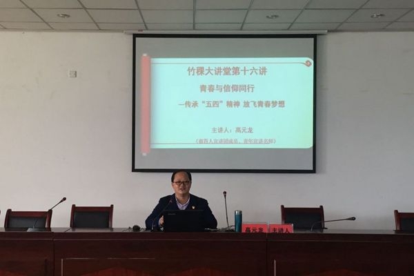 “青春的季节花海飘香,青春的梦想激昂向上”。为隆重纪念五四运动100周年,4月12日下午,竹稞大讲堂邀请到安徽省“放飞新时代青春梦——十九大精神走进青年”百人宣讲团成员,共青团安徽省委、安徽省委讲师团专家库青年宣讲名师,安徽三联学院思政部副教授高元龙,开展了一场以“传承‘五四’精神 放飞青春梦想”为主题的学术报告。我校部分师生聆听了此次讲座,讲座由思政部主任余晖主持。