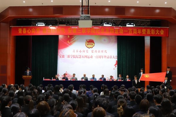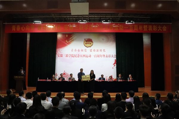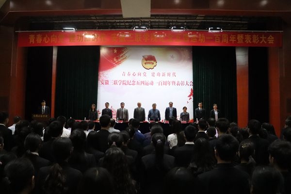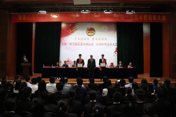 5月10日中午,我校纪念五四运动100周年暨表彰大会在图书馆多功能厅隆重举行。校长金会庆、校党委书记李明阳等在肥全体校党政领导出席大会,各学院、部门负责人,各基层党委、党总支(直属党支部)书记,各学院团总支书记,全体受表彰人员以及500余名团员青年代表参加大会。大会由校党委副书记鲁先长主持。