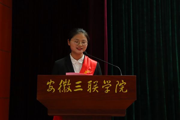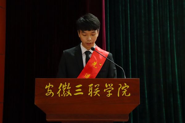计算机工程学院2016级计算机科学与技术(1)班,2018年度“安徽省优秀大学生”(文艺创作类)获得者张泓同学作为优秀共青团干部代表发言,他以“倾听新时代的发声 做一个果敢的追梦人”为题,结合专业所学和自己的新媒体之路分享了坚持理想,担当责任,知行合一的三点切身体会,并表示获得“安徽省优秀大学生”不仅是鼓励更是鞭策,今后将进-步加强思想政治学习,创新创作更多的网络作品,用90后、00后最“潮”的方式来学习、解读、传播马克思主义中国化的最新成果。