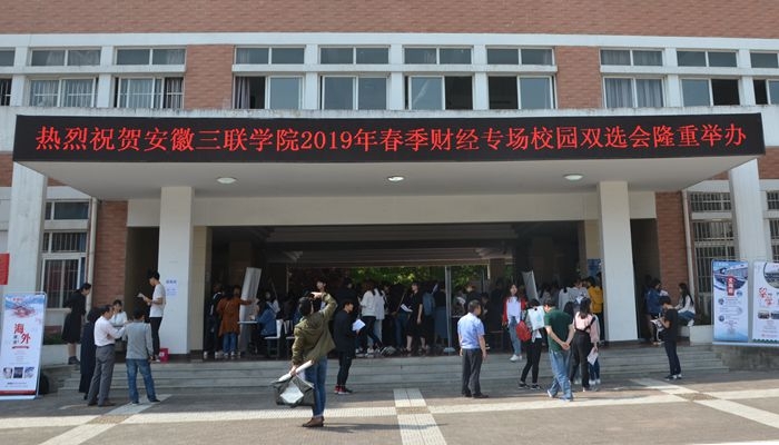 5月9日,由合肥市包河区人力资源和社会保障局和安徽三联学院联合主办,合肥永屹人力资源有限公司和安徽三联学院财会学院承办,安徽省人力资源管理协会协办的“爱在江淮 乐业合肥”——安徽三联学院2019年春季财经专场校园双选会在学院A楼大厅顺利举行。