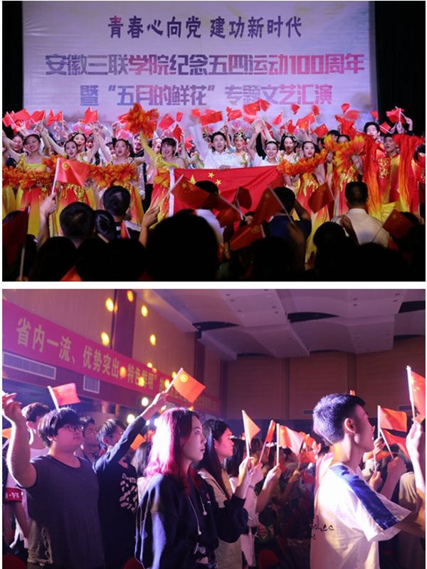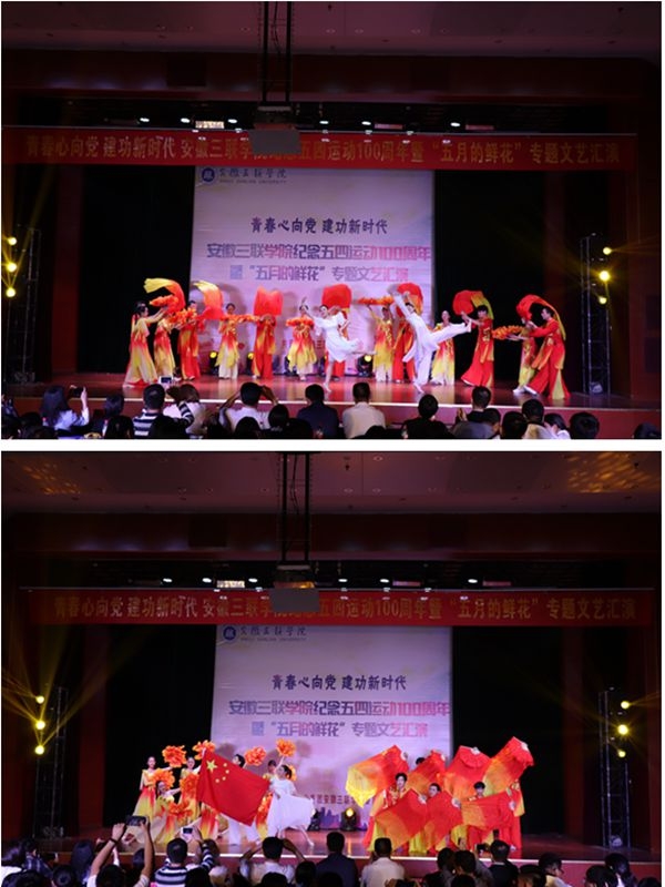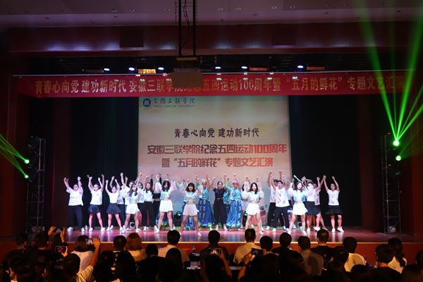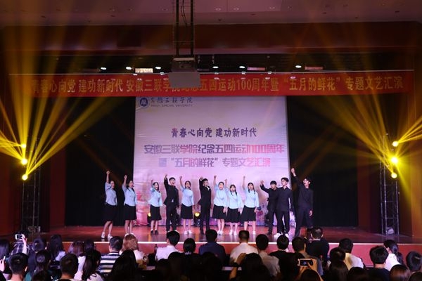 此次文艺汇演在纪念五四运动100周年之际,三联学子们用饱含深情的表演表达了牢记五四历史、传承五四精神、勇担时代责任、不忘初心、心系祖国的豪情。新时代,新梦想,新征程,未来三联青年必将在党的领导下,勇做走在时代前列的奋进者、开拓者、奉献者,以执着的信念、优良的品德、丰富的知识、过硬的本领,担负起历史重任,让百年五四精神放射出更加夺目的新时代光芒,助力学校加快建成“国内知名、省内一流、优势突出、特色鲜明”的地方应用型高水平大学,满怀信心为建设现代化五大发展美好安徽凝聚青春力量!(撰稿:朱悦 杨宇 徐燕 摄影:张方旭 余梁伟 编辑:方小庆)
