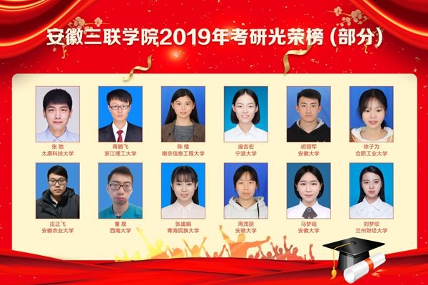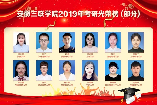 近三年来,我校考研成绩呈不断上升态势。这些优异成绩的取得,既是考研学子寒窗苦读、奋力拼搏的结果,也是学校不断提升学风建设质量、注重内涵建设的体现。同时,我校先后与山东交通学院、安徽工业大学、安庆师范大学等高校联合培养硕士研究生,打通学生升学通道,助力学生成长成才。