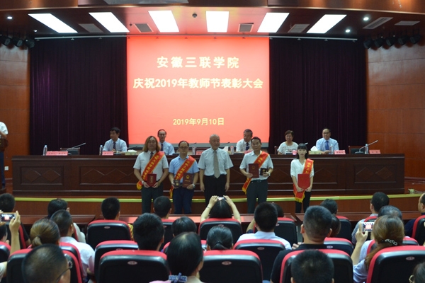 副校长王瑞友宣读表彰文件。大会表彰了安徽省教学名师、省优秀教师、省级先进及竞赛获奖教师,我校第三届星级教师、星级辅导员,校第十四届青年教师教学基本功大赛、第一届“超星杯”移动教学大赛暨智慧课堂教学创新大赛、2017-2018学年优秀教研室等奖项的获得者,共计71人次。金会庆校长为获奖教师颁发荣誉证书并合影留念。