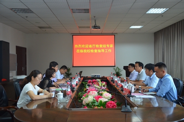 9月27日上午, 省教育厅2019年度教学实验室危化品安全管理专项检查组莅临我校检查指导工作,交流汇报会在图书馆608会议室举行。校长助理蔡文芬,实验室与设备管理处、教务处、保卫处相关部门负责人参加会议。