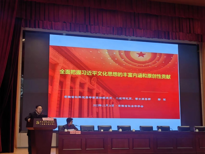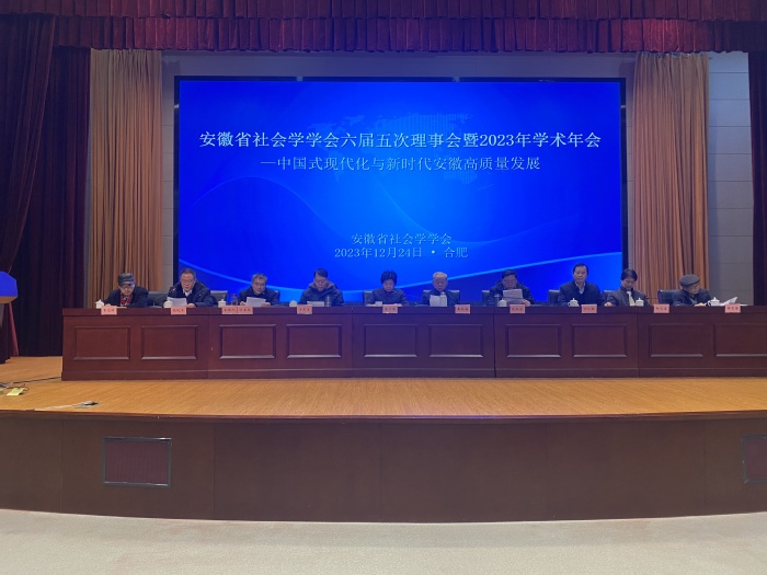 安徽省社会学学会会长金乃俊代表理事会作年度工作报告;副会长余皖生宣读了《关于表彰2023年学术年会“中国式现代化与新时代安徽高质量发展”获奖论文的决定》;副会长王东生宣读了关于增补学会副秘书长、常务理事、理事建议名单,理事会一致通过。在集体学习环节,学会常务理事、省社科党委专家宣讲团成员、省社科院当代所所长邢军研究员作了题为《全面把握习近平文化思想的丰富内涵和原创性贡献》的辅导报告。最后为学术年会,副会长、安徽大学范和生教授作了题为《中国式现代化视角下乡村社会建设路径体系构建——以安徽为例》的主旨报告。来自安徽师范大学、安徽建筑大学、安徽财经大学等高校的专家学者围绕主题“中国式现代化与新时代安徽高质量发展”作了精彩的交流发言。我校与会人员表示受益匪浅。
