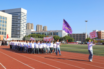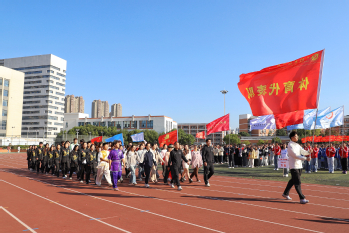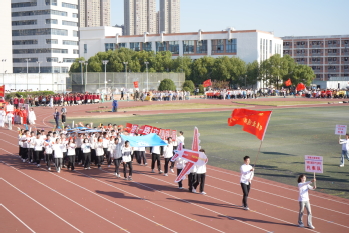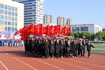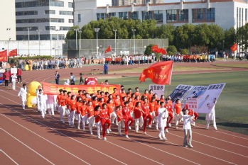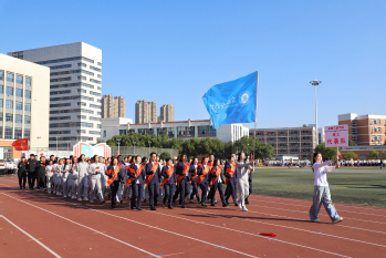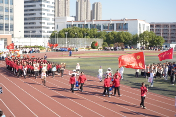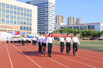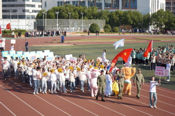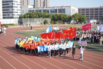 9时,开幕式在精彩的体艺表演中拉开序幕,三院三部、体育部、校团委联合演绎了啦啦操《青春加油》、武术表演《少年中国》、方阵变换《我与三联共成长》等节目。体艺表演后,护旗手护送国旗、校旗和运动会会旗进入体育场,各运动员代表队随后依次入场。