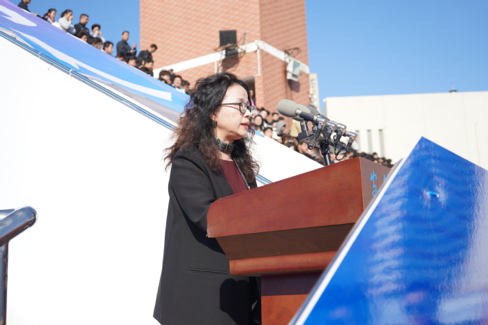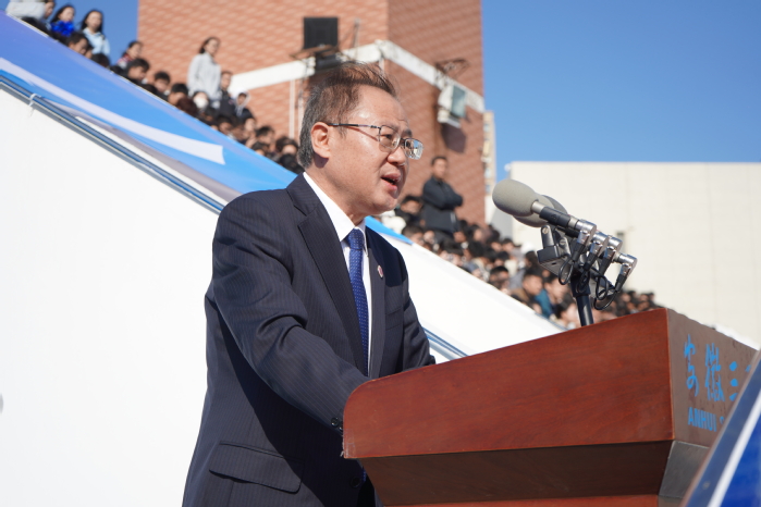 金会庆致开幕词,他首先代表学校向精心筹备运动会的工作人员表示衷心感谢,向运动员、裁判员致以崇高敬意。他指出,长期以来,学校高度重视体育工作,持续巩固其在立德树人中的关键作用,全方位融入人才培养环节。他强调,体育能强体魄,是学生成长的重要元素,是培养坚韧意志、团队精神和竞争意识的重要途径,也是塑造全面发展人才的关键一环。