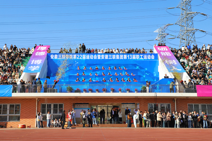 11月7日上午,安徽三联学院第二十二届运动会暨安徽三联集团第十三届职工运动会开幕式在主校区体育场举行。三联创始人、校长金会庆,省教育督导专员、校党委书记王光虎,安徽三联集团董事长余皖生,安徽三联集团执行总裁金磬等领导参加开幕式。开幕式由常务副校长江秀丽主持。