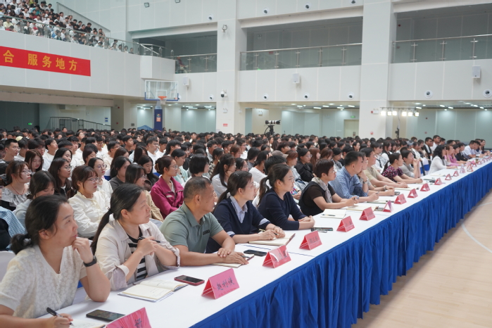 10月11日,省教育督导专员、校党委书记王光虎围绕“爱国、奋斗、本领、纪律”等关键词,为2025级6000余名新生讲授第一堂思政课,勉励学校青年学生在纷繁复杂中保持定力,在诱惑考验中坚守初心,在学思践悟中提升能力,在沉潜深耕中磨砺意志,争做有理想、敢担当、能吃苦、肯奋斗的新时代好青年。党委委员、副校长蔡文芬主持授课。