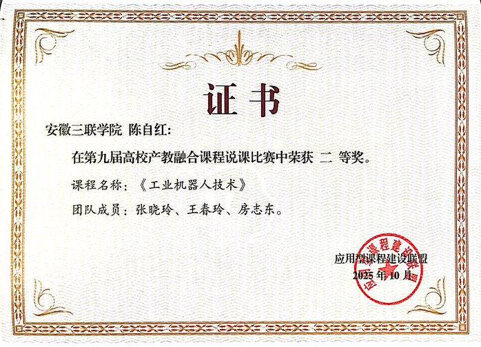 在说课比赛环节,我校现代康养产业学院陈自红、张晓玲、王春玲教师团队主讲的《工业机器人技术》课程,凭借其创新的“双元共育+四有课堂”教学模式,从众多参赛课程中脱颖而出,荣获全国二等奖。